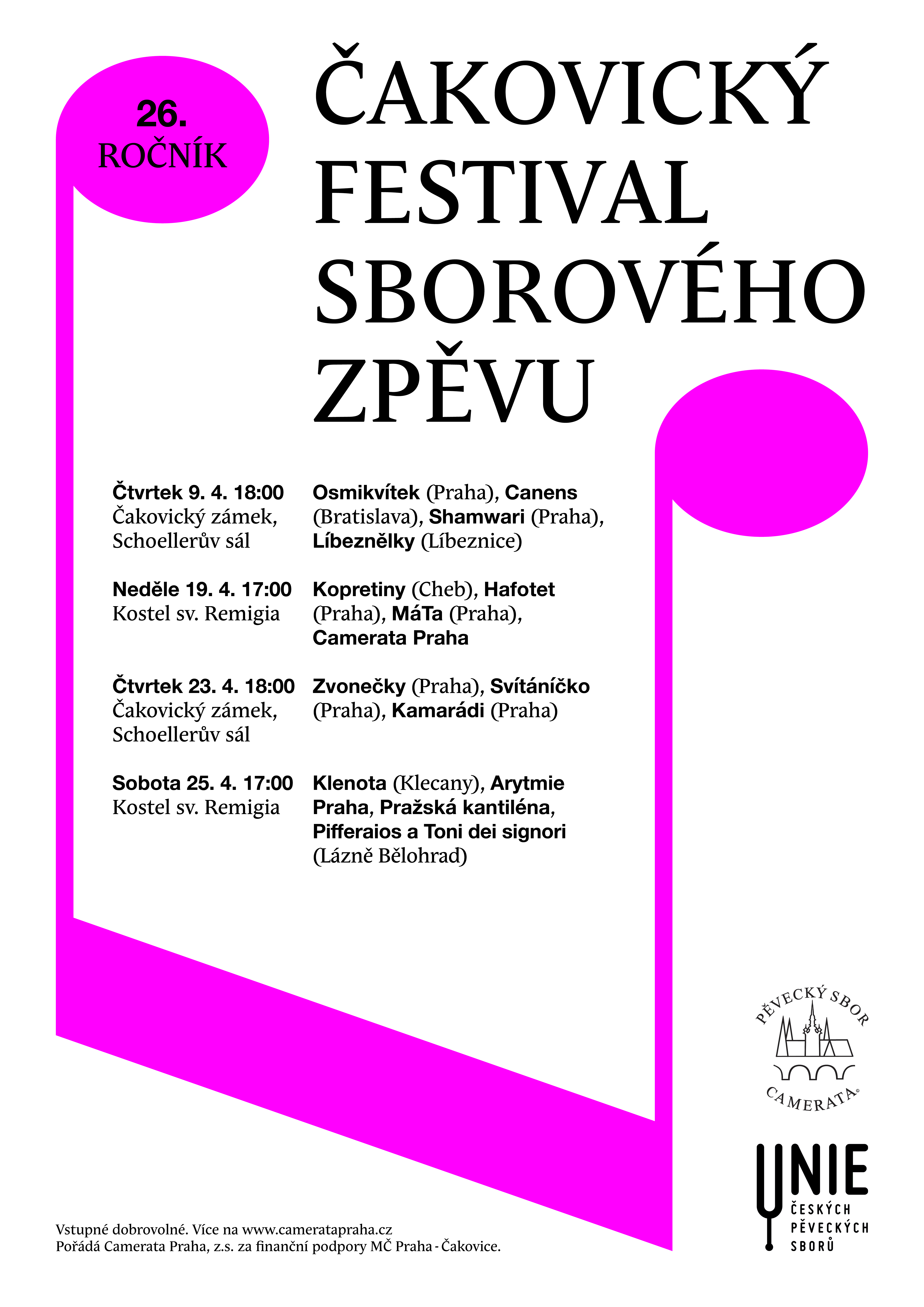 Srdečně vás zveme na koncerty Čakovického festivalu sborového zpěvu, vystoupí celkem 15 pěveckých sborů.